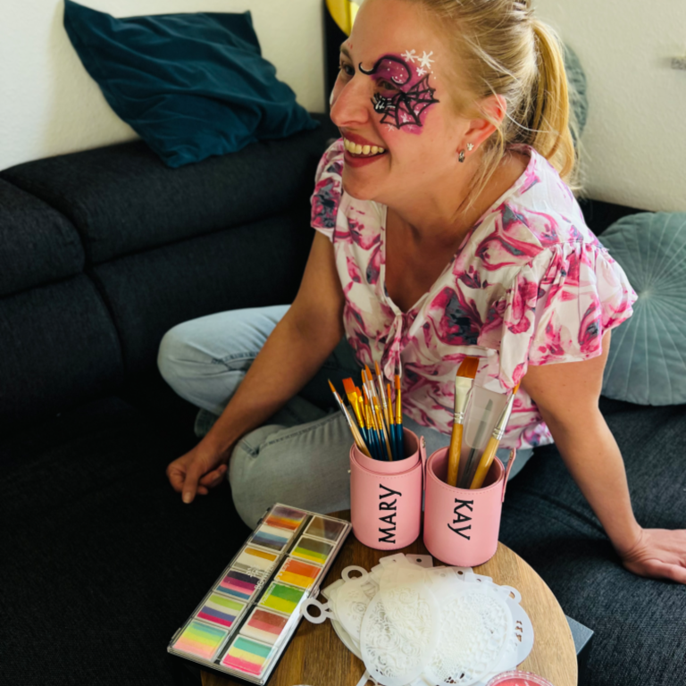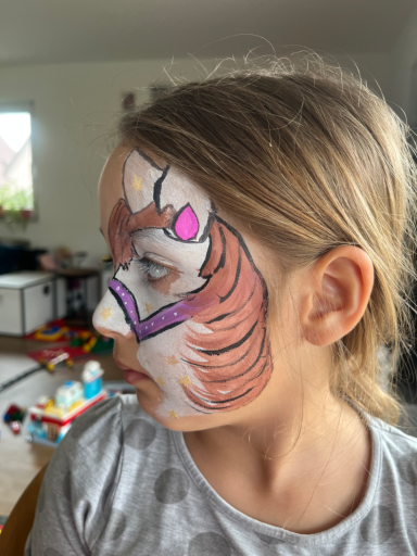 Bei Veranstaltungen plane ich daher eine Schminkzeit von etwa 7-9 Minuten pro Kind ein. So können möglichst viele Kinder geschminkt werden, ohne Abstriche bei der Qualität zu machen. Bei privaten Feiern, wie Geburtstagen oder Familienfesten, nehme ich mir bewusst mehr Zeit und rechne mit 12-15 Minuten pro Kind.